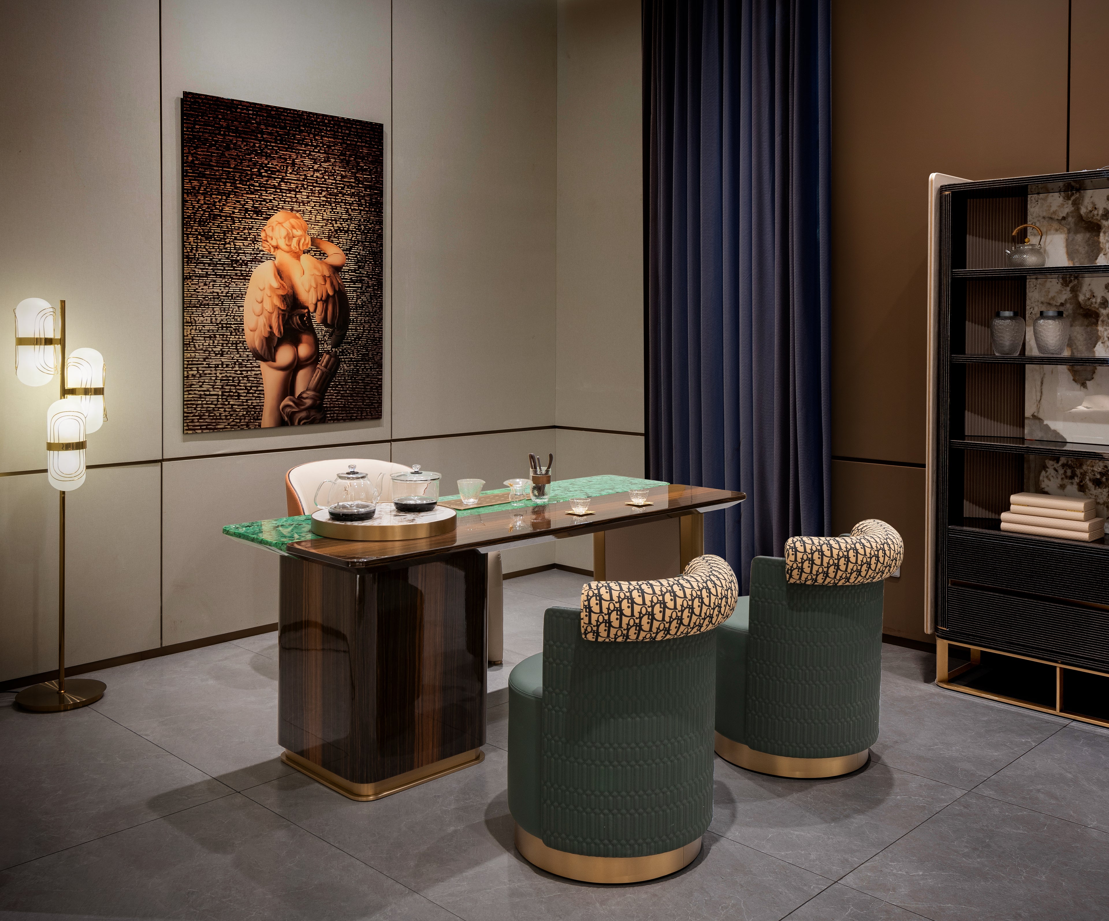 AK-013M Executive Desk – Sculpted Stone Top with Gold Structure and Marble Drawer