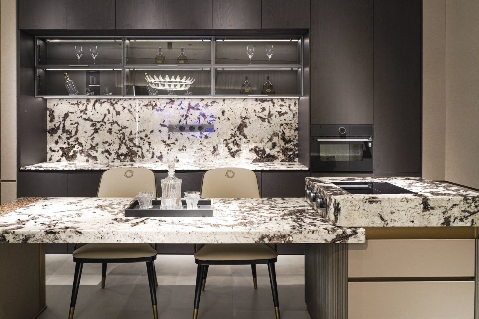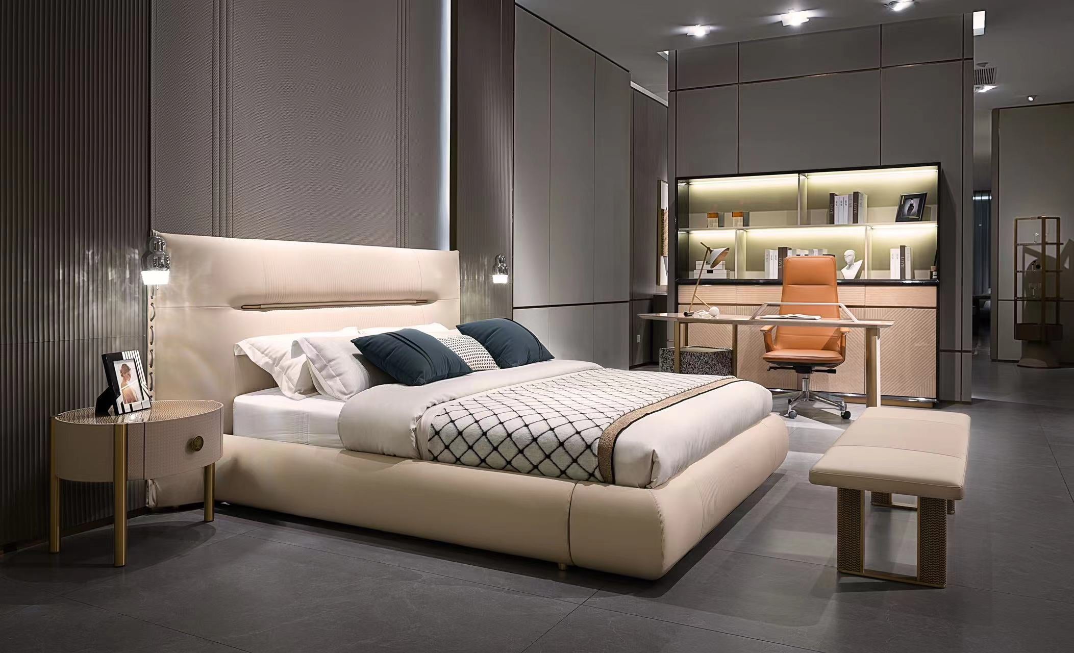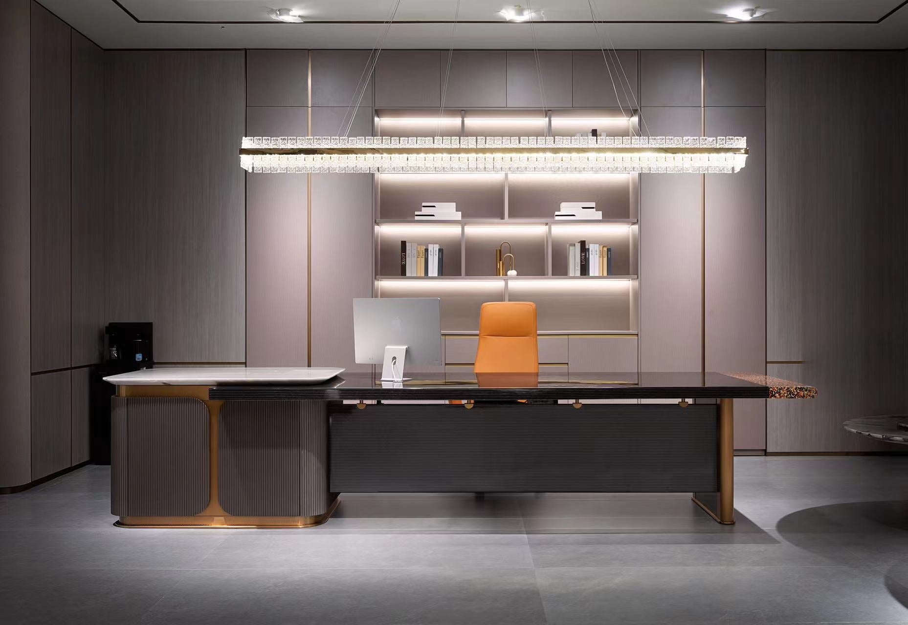 AK-013M Executive Desk – Sculpted Stone Top with Gold Structure and Marble Drawer