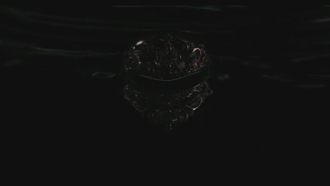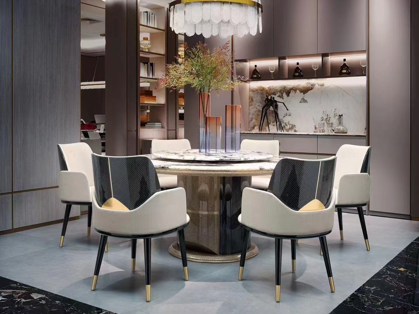 AK-001G-2 Dining Table – Black Stone Round Top with Sculptural Gold Pedestal Base
