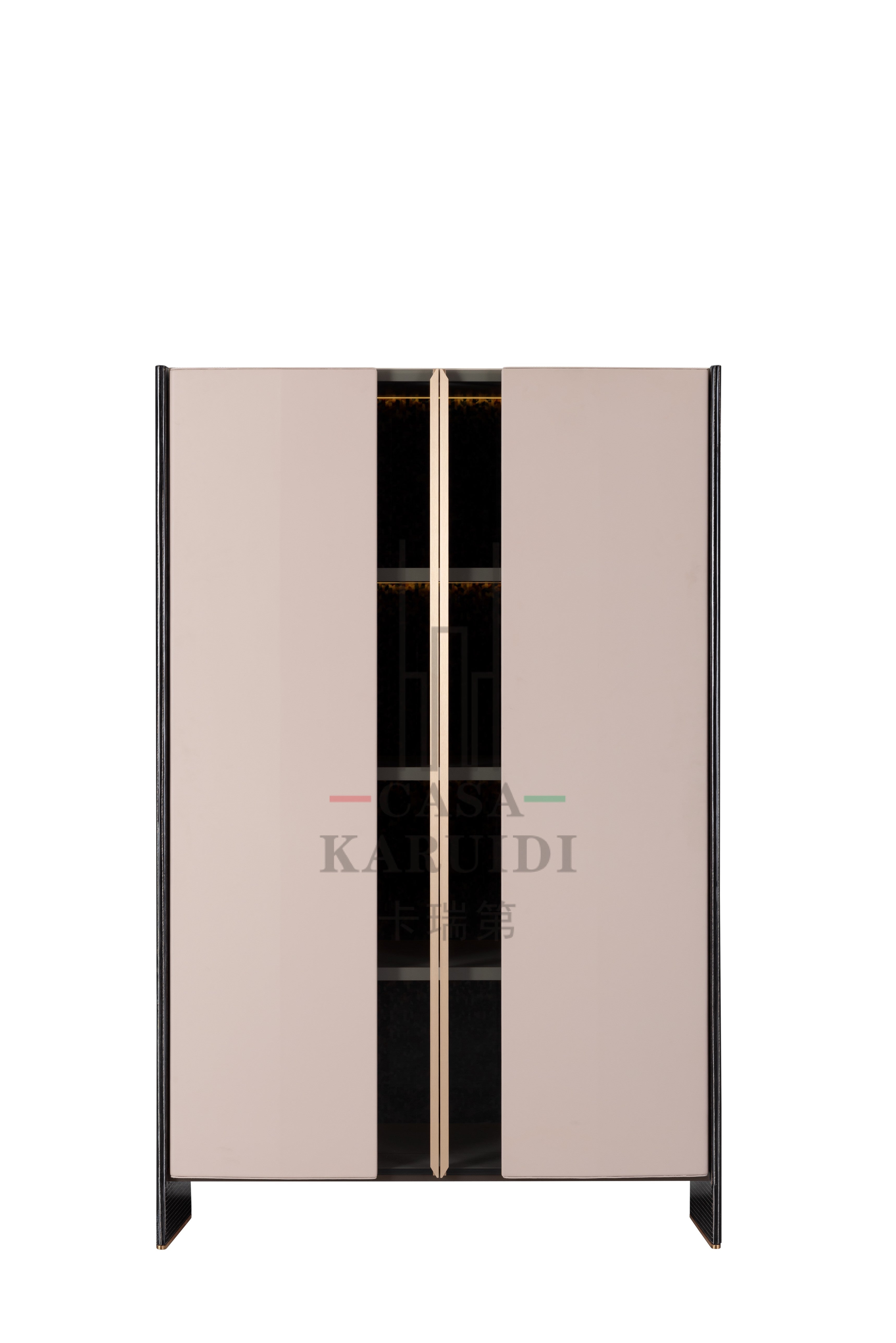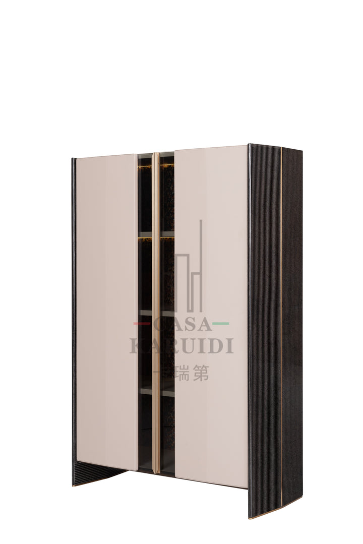 AK-021M – Vertical Display Cabinet with Gloss Lacquer and Textured Accents