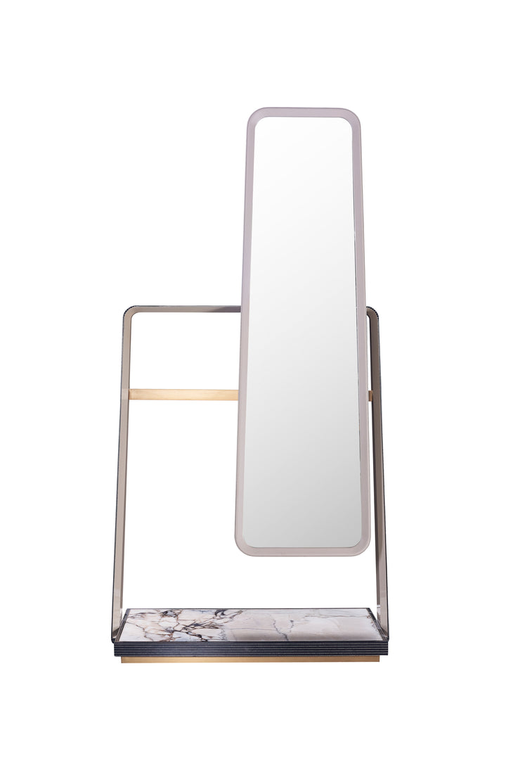 Designed for modern interiors that value distinctive design and impeccable craftsmanship, this mirror serves as a statement piece in dressing areas, bedrooms or walk-in closets.